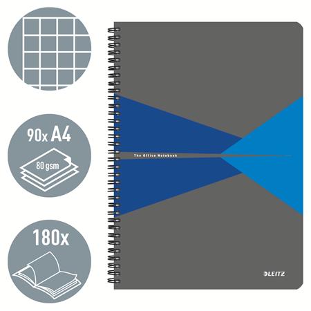 Blok, A4, štvorčekový, 90 listov, PP obálka, LEITZ "Office", sivá-modrá