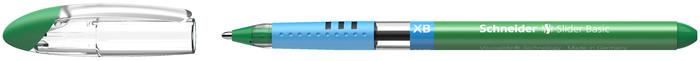 Guľôčkové pero, 0,7 mm, s vrchnákom, SCHNEIDER "Slider Basic XB", zelená