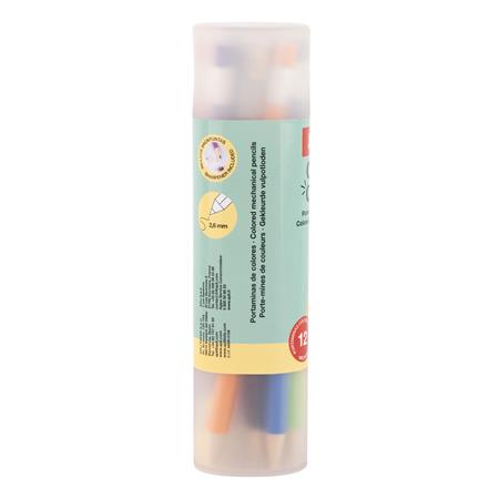 - obsah sady: 12 náplňových ceruziek v rôznych farbách so zodpovedajúcimi 12 hrotmi a 1 strúhadlom