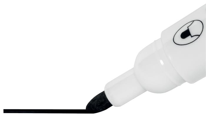 Popisovače Glide na biele tabule je možné použiť na sklenené a smaltované tabule a iné za sucha stierateľné nepórovité povrchy. - vhodné na väčšinu neporéznych, za sucha stierateľných povrchov, napr. na sklenené, smaltované alebo melamínové tabule - ľahká vôňa - rýchloschnúci atrament - ideálny pre školy, kancelárie a domácnosti - hrúbka čiary: 2 mm - prevedenie hrotu: kužeľovité - balenie: 10 ks/bal - farba: čierna