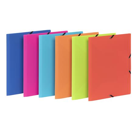 Na uloženie dokumentov veľkosti A4 - flexibilný, polypropylénový materiál - vložené dokumenty nevyžadujú dierovanie - uzatvárateľné čiernou gumičkou v rohoch - 3 vnútorné chlopne pre bezpečné uloženie - hrúbka chrbta 15 mm - štítok na chrbte - rozmer: 245x320 mm