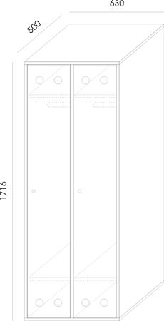 Rozmery: šírka 63 cm, hĺbka 50 cm, výška 171,6 cm