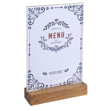 Ideálny na vystavenie fotografií, informácií, jedálnych lístkov či ponúk na stole. -vyrobený z kvalitného akrylu  zvislá (stojatá) orientácia -priehľadný -podstavec z dreva -obojstranný -rozmery: 150 x 50 x 240 mm -odolný voči UV žiareniu