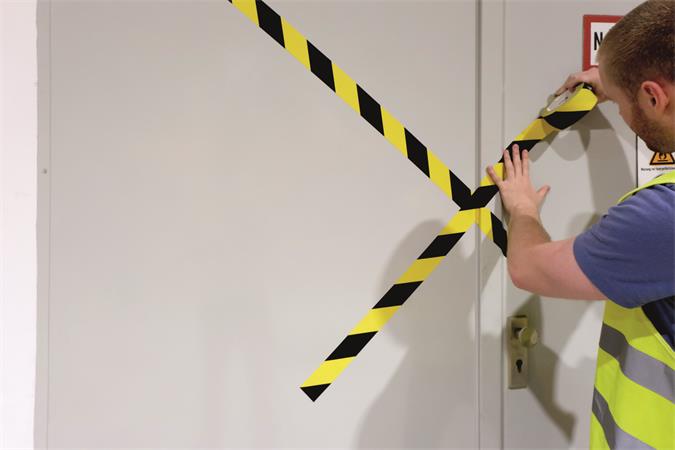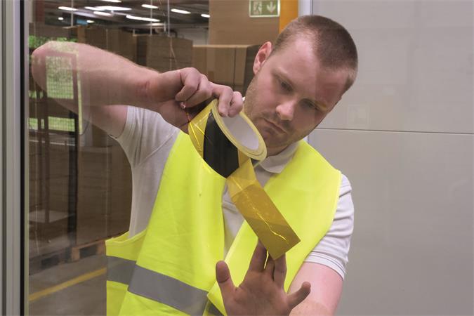 Samolepiaca podlahová označovacia páska na dočasné označenie a identifikáciu pevných alebo pohyblivých objektov a povrchov. Použitie gumového lepidla robí pásku z mäkkého PVC veľmi prispôsobivou.