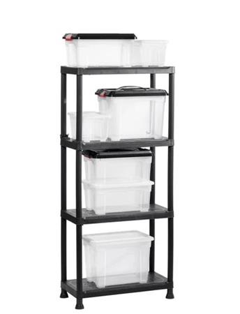 Objavte vynikajúci prepracovaný systém na uskladnenie väčších i menších predmetov prehladne a  prakticky. Police sú odolné a jednoducho a rýchlo zmontovateľné.  - nosnosť: 20 ks/polica -zvýšené nohy -materiál: odolný plast - farba: čierna - rozmery: 60x30x135 cm (šírka x hĺbka x výška) - hmotnosť: 3,2 kg