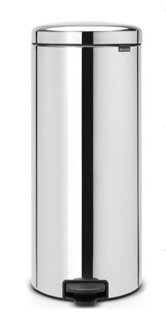 Nerezový odpadkový kôš, kovovej farby, s rýchlym pedálovým ovládaním a protipožiarnou úpravou.