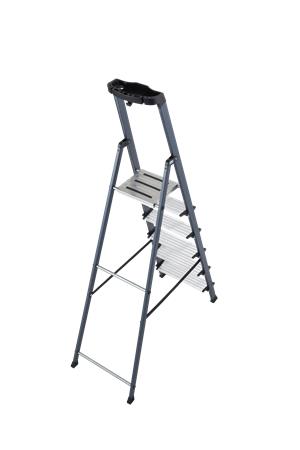 eloxované rameno je odolné voči opotrebeniu a zabraňuje zašpineniu rúk, veľký odkladací priestor na náradie so vstavaným vešiakom na vedro, 125 mm široká protišmykové priečky, veľkorozmerné bezpečnostné zátky zabezpečujú extra veľkú bezpečnosť, materiál: hliník, nosnosť: 150 kg
