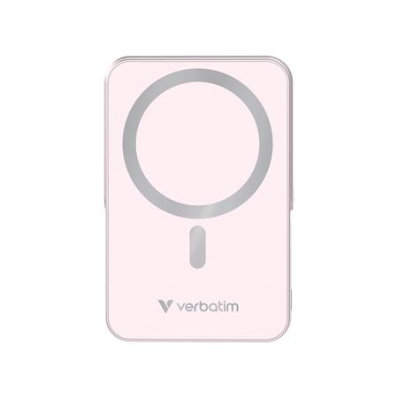 Power banka, externá batéria, magnetická (bezdrôtová), 10 000 mAh, stojanček, VERBATIM "Charge n Go", ružová